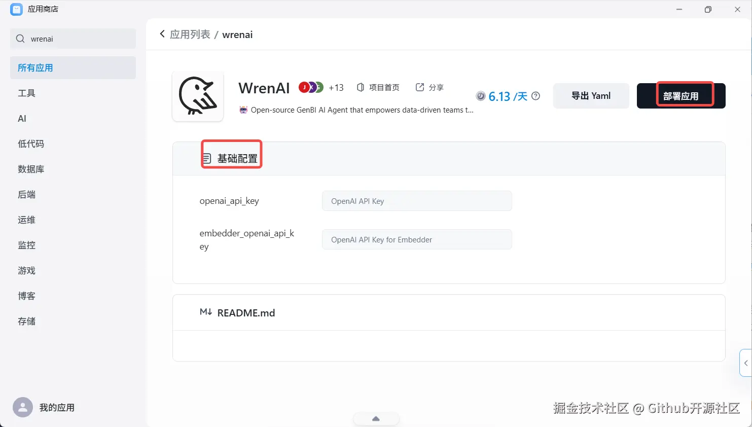 填好之后,我直接点击右上角的“部署应用”按钮。