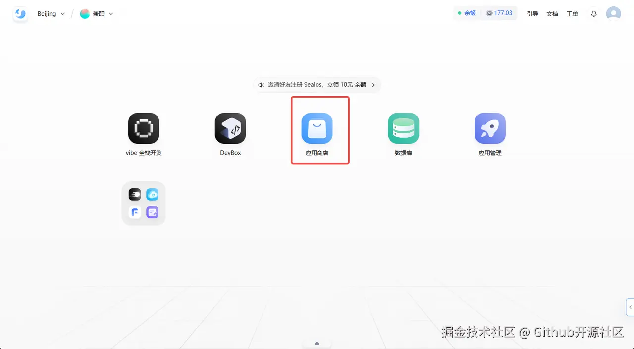 我登录 Sealos 桌面,直接点开“应用商店”。