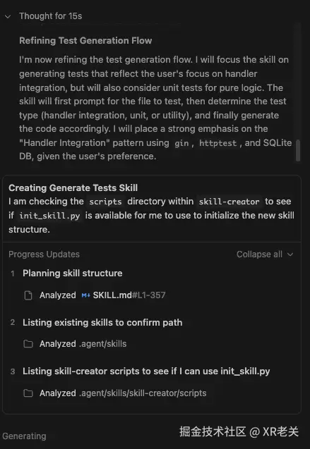 在Antigravity中发送Prompt,让他帮我创建一个可以生成自动化测试的skill