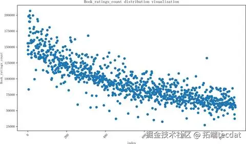- 书籍评分数量呈现右偏态分布,大部分书籍的评分数量集中在较低水平,仅有少数书籍拥有大量评分,体现了“马太效应”,头部书籍凭借各种优势吸引了更多的读者评分。