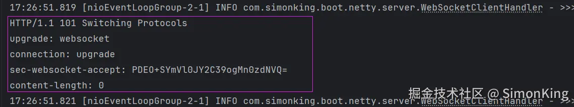 这里自定义的处理器和之前的很多不同,需要额外处理WebSocket请求的握手操作