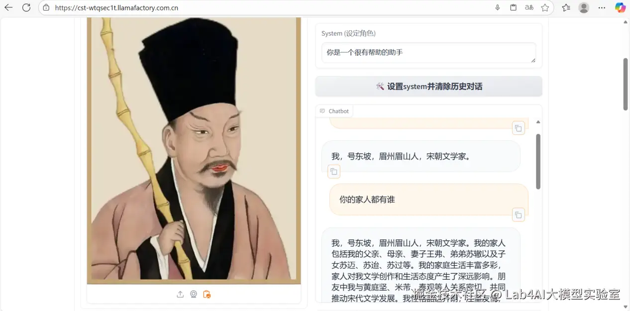 之前我们通过LLaMA Factory微调实战,打造了能以苏东坡口吻对话的角色。
