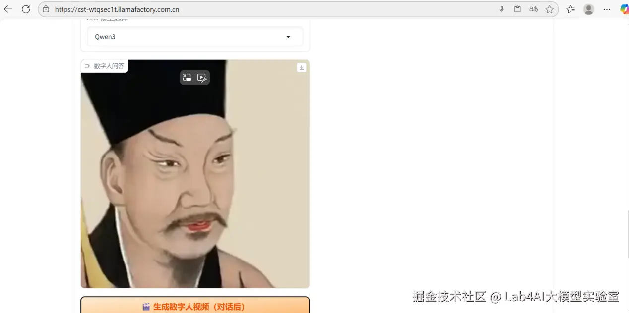 在界面中上传苏东坡人物形象,即可启动数字人交互。选择“Qwen3”模型后,你可以: