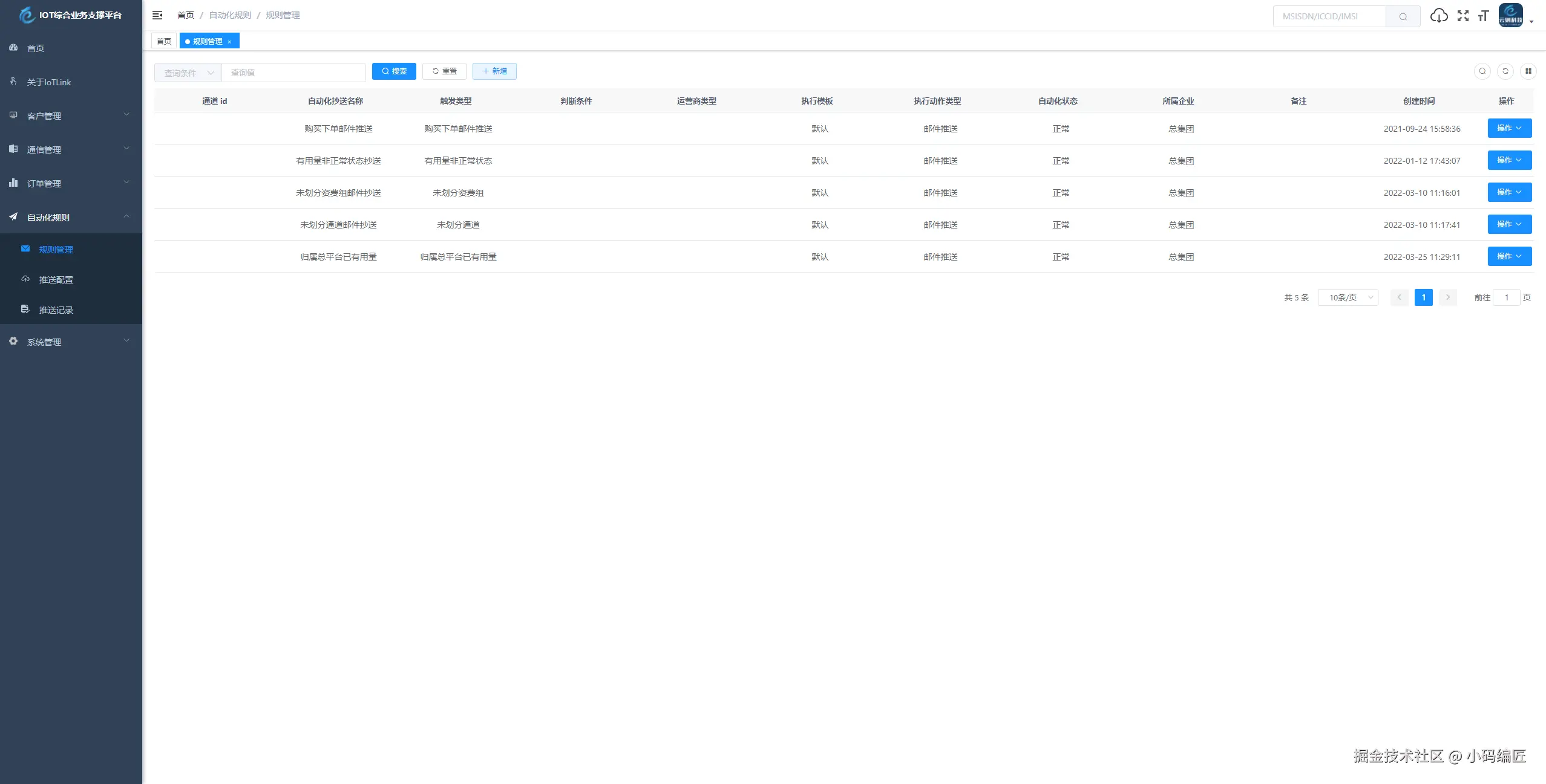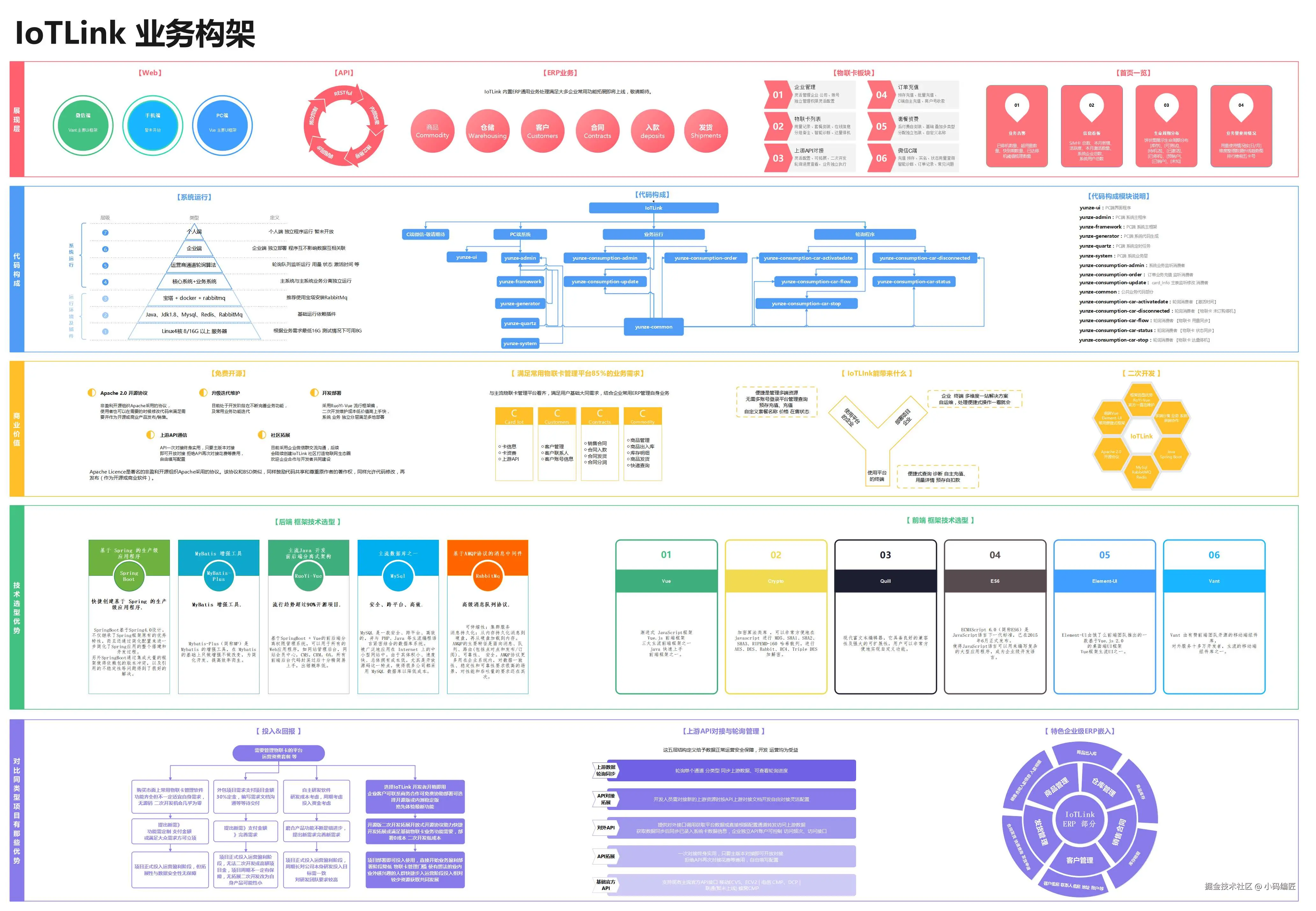 IoTLink、物联网平台、一站式解决方案、万物互联、SpringBoot、Vue、资费管理、生命周期管理、数据安全、开源项目、SpringBoot、Vue、物联网平台、卡模组管理、RabbitMQ、MyBatis、Redis、MySQL、多运营商接入、综合业务支撑