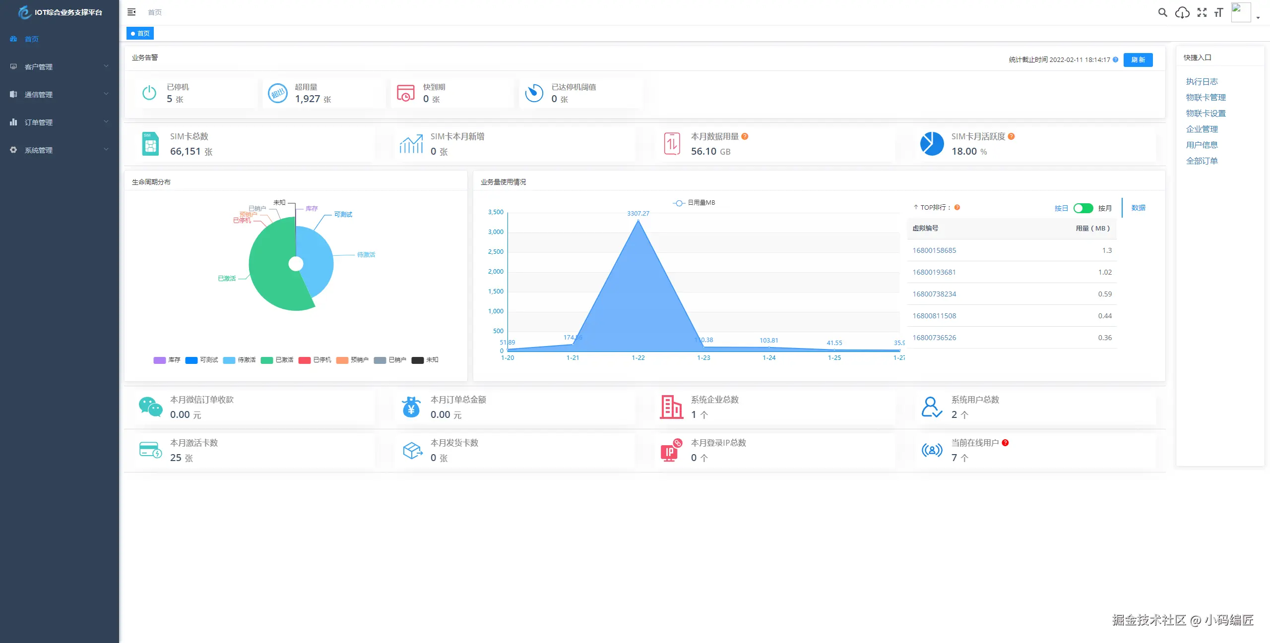 同时,平台的高性能和稳定性也确保了大量物联卡同时在线和高并发场景下的业务正常运行。