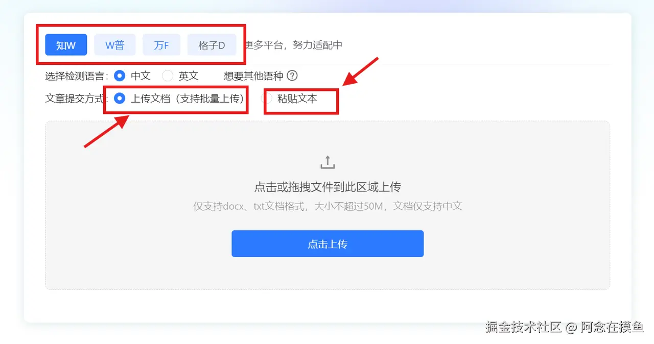 另外,它支持直接上传文档。如果是段落降AI,它也支持直接复制粘贴,不用再存入文档上传,一键就能降AI超级简单!支持知网、维普、万方这些大平台。算法更新也快。