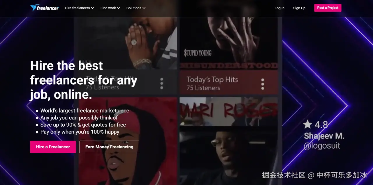 Upwork 是很多程序员接单绕不开的平台。项目多、客户来源广,从初创公司到成熟企业都有。它的特点是前期比较难,但一旦跑通,后续会越来越顺。