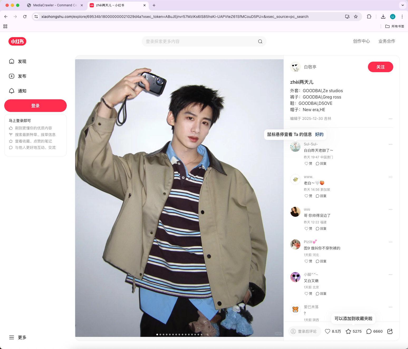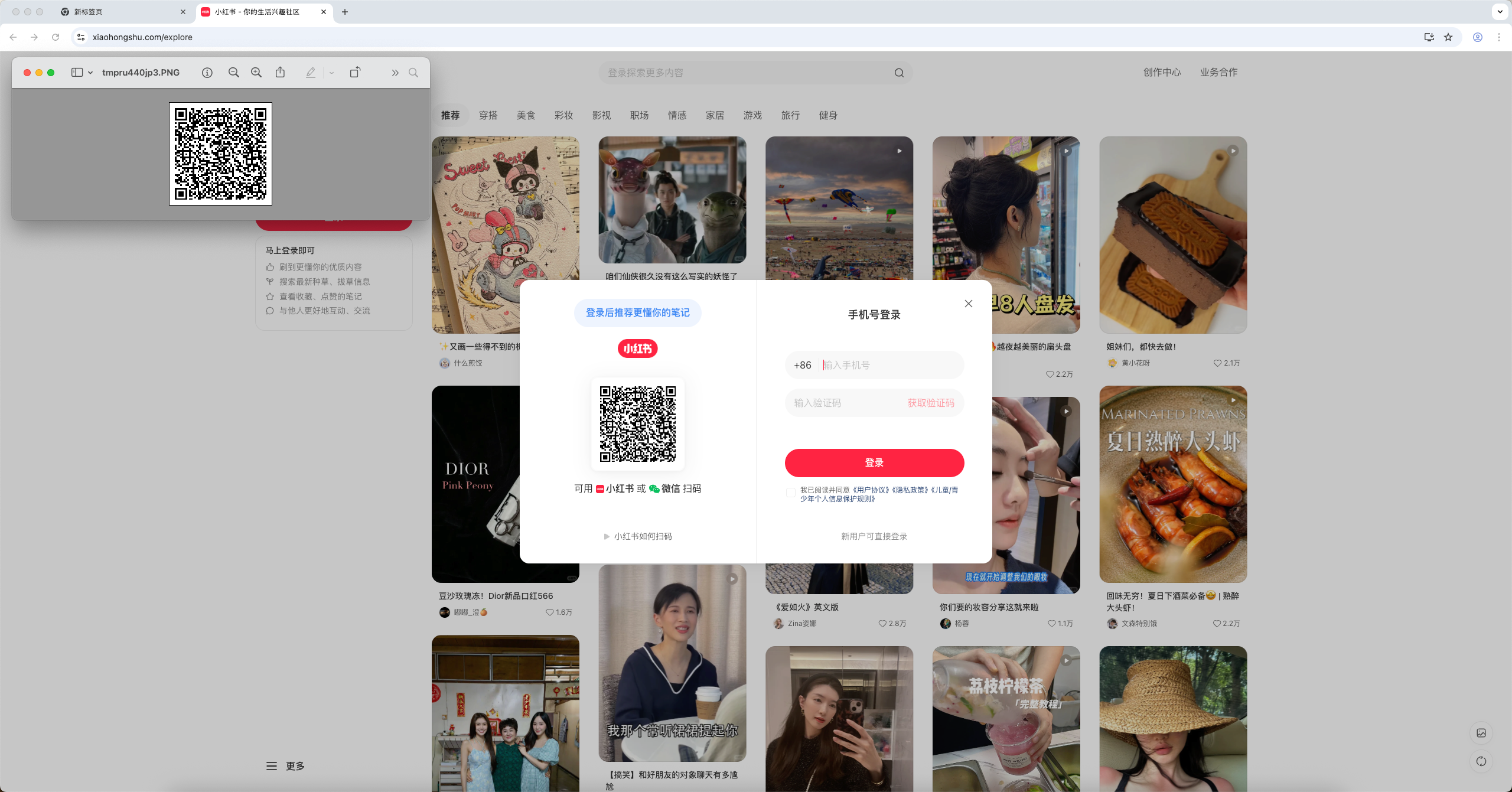 之后会弹出xhs的网页端让你扫码登陆,登陆成功之后便开始爬取内容: