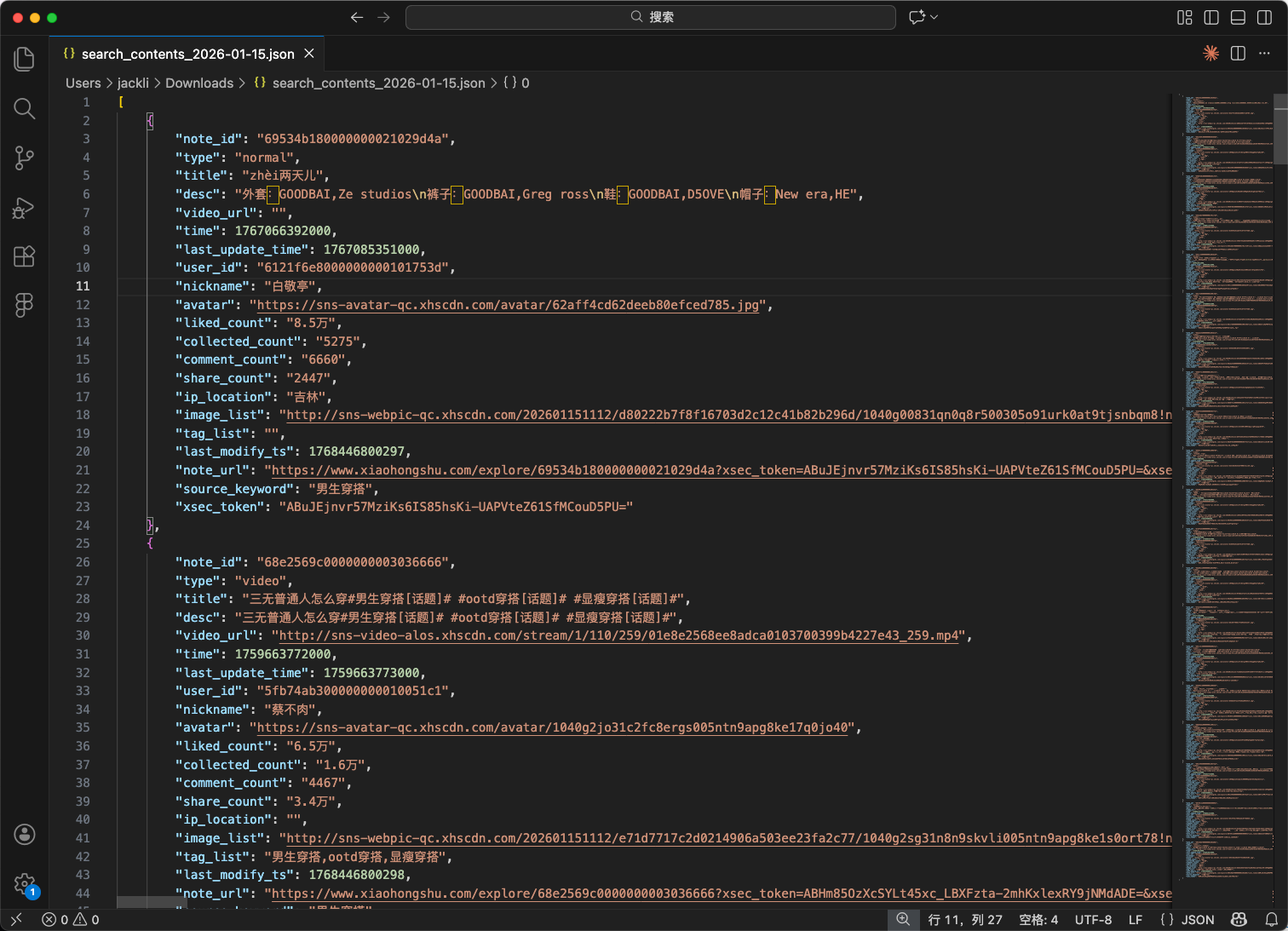 爬取成功后可以导出为json文件: