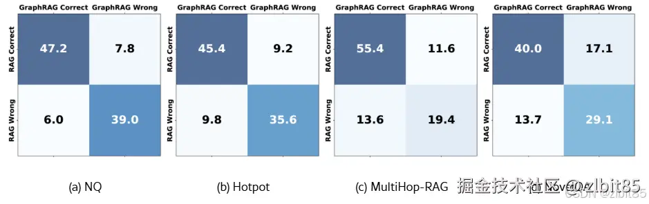 论文做了一个更细致的分析:把每个问题按照“RAG和GraphRAG谁答对了”分成四类。