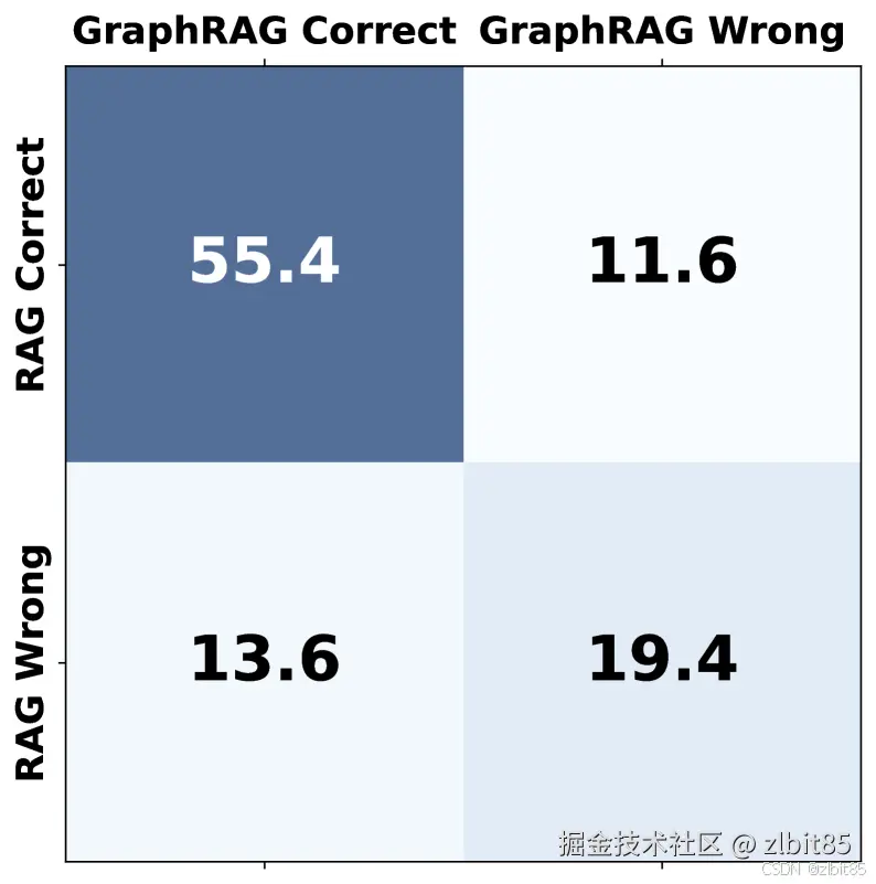 - 有相当一部分问题(约13.6%)只有GraphRAG能答对(RAG搞不定)。