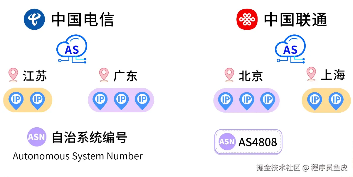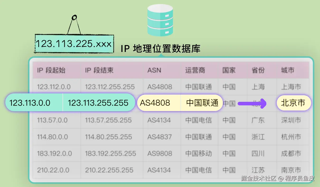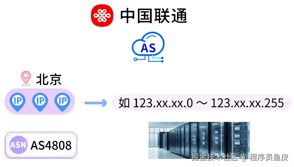 数据库里会记录:这个 IP 段属于 AS4808(中国联通),且目前分配给了北京市的某个接入节点。就知道你大概所属的位置了。