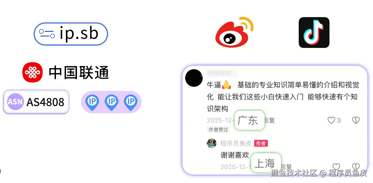 这时,程序员鱼皮突然出现在你身后,擦着鼻血说:淡定,很多平台都会显示用户 IP 归属地的,这很正常。