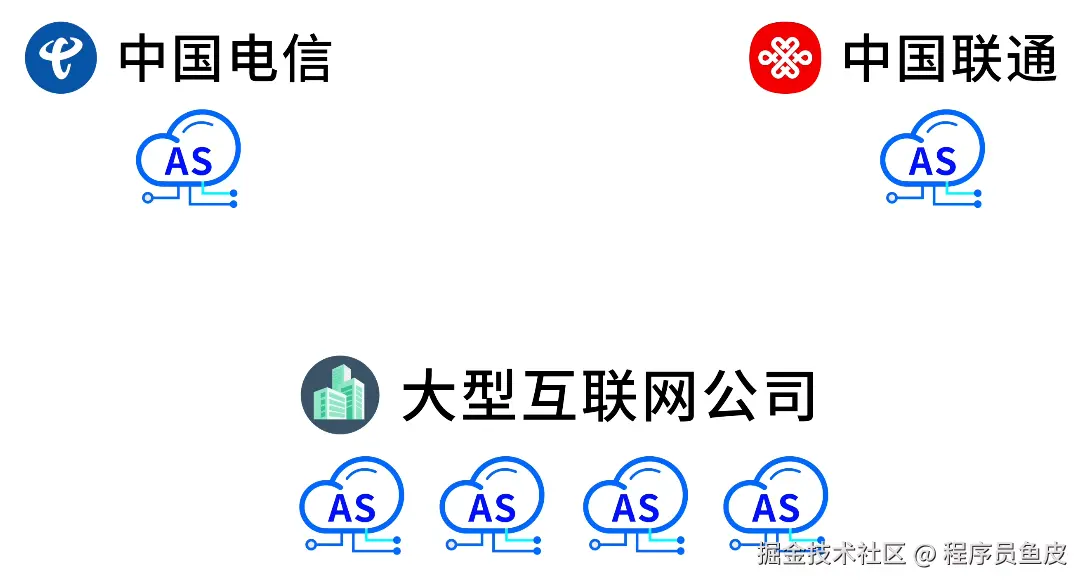 这些 AS 一般由电信、联通这样的运营商(ISP),或者大型互联网公司运营。