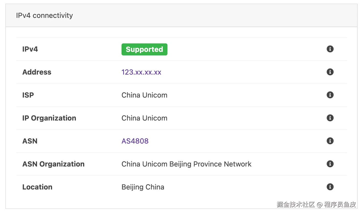 - ASN Organization:China Unicom(ASN 所属的运营商)