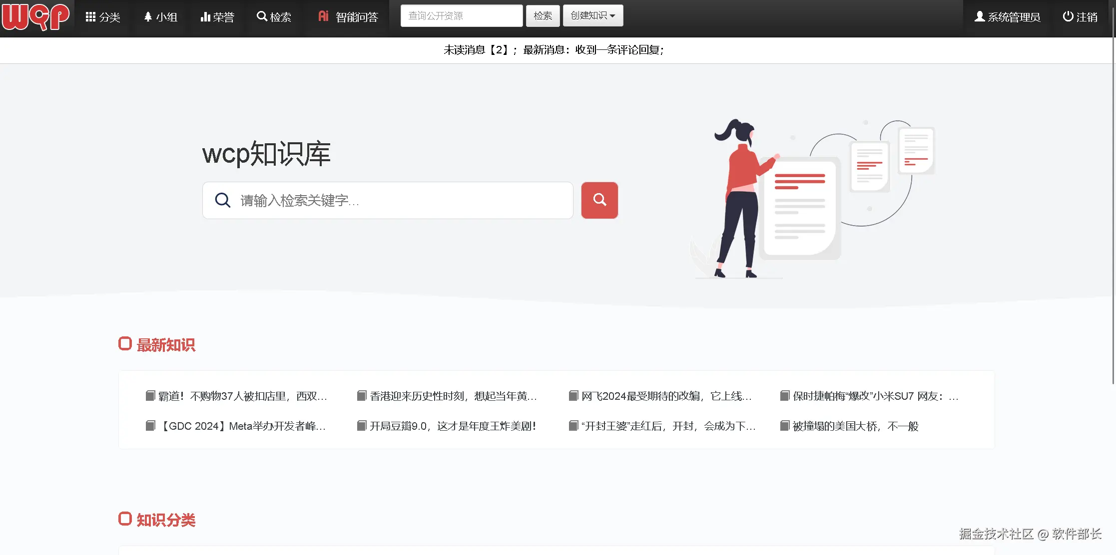 WCP 是一套BS架构的开源知识管理系统、知识库系统。它能提供团队知识库建设的一整套功能,从知识创建、知识更新、知识推送到知识评价、知识激励、知识统计以及基于以上功能权限控制等功能。