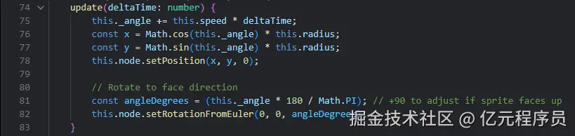 拖尾特效的前提是拖尾的物体需要先“运动”起来,我们简单地在update里面让飞机围着中心飞起来: