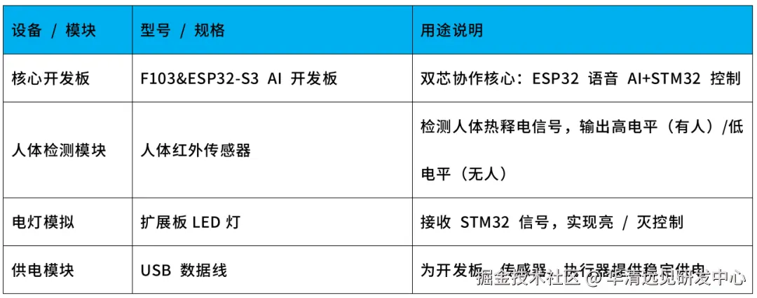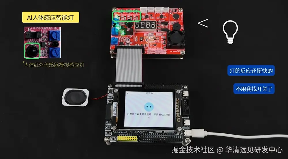 《AI人体感应智能灯》项目硬件平台是华清远见STM32F103&ESP32-S3 AIoT开发板。
