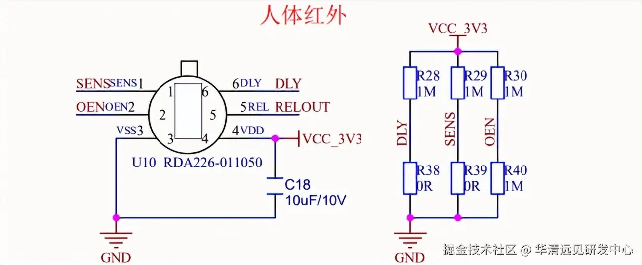 根据以上传感器内部原理图得知,只要判断5号引脚输出是高电平还是低电平就知道是否有人靠近传感器,从而达到检测人体的效果。