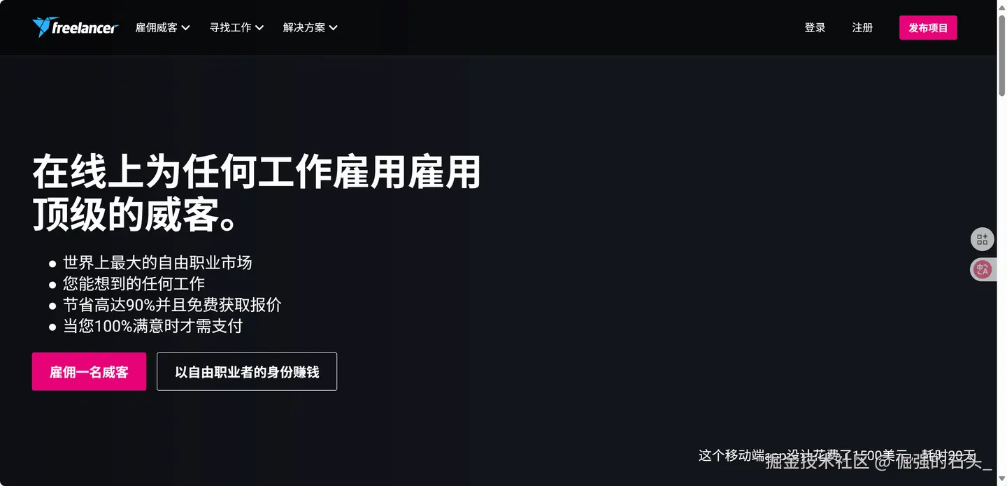 Freelancer 是比较典型的竞标模式接单平台,项目数量多、覆盖领域广。竞标机制决定了竞争非常直接,价格区间跨度大,新人前期很容易被卷进低价竞争,需要花时间熟悉平台规则和客户预期,慢慢建立评价体系。