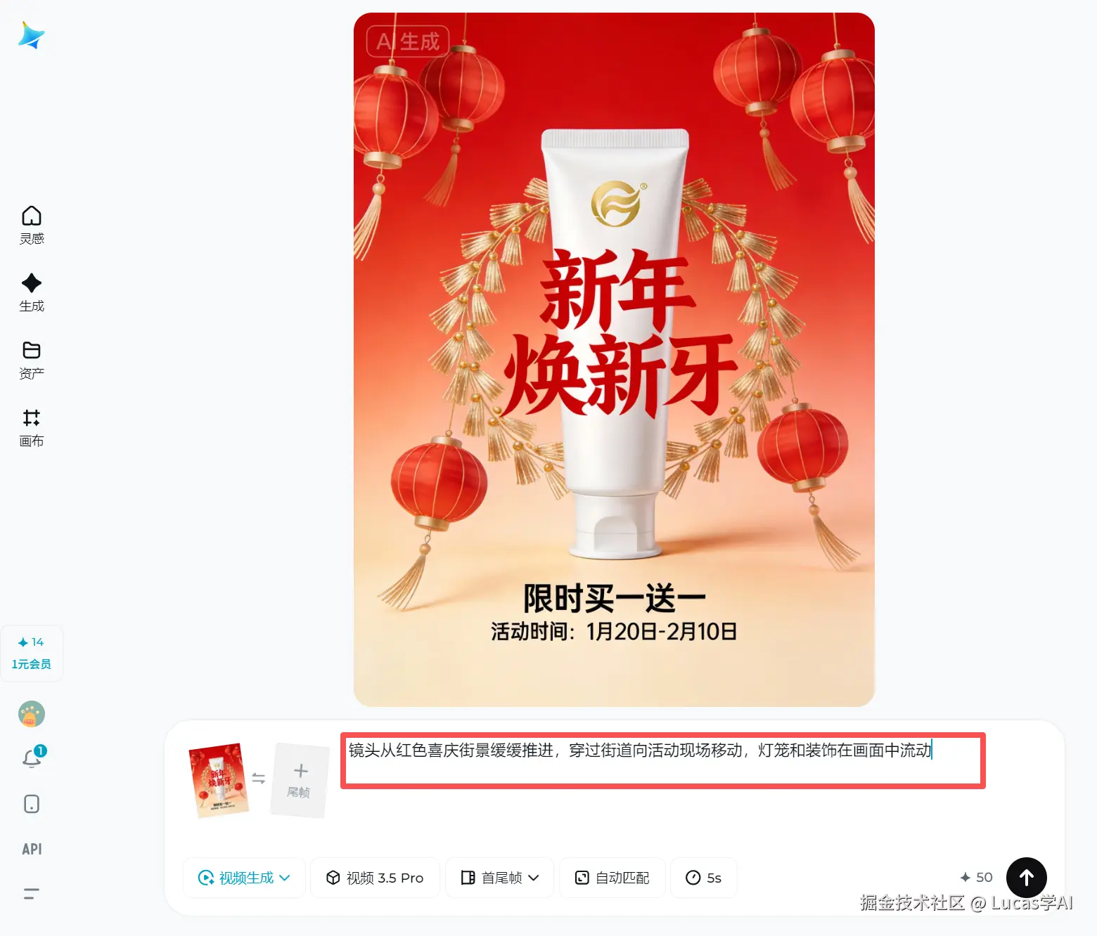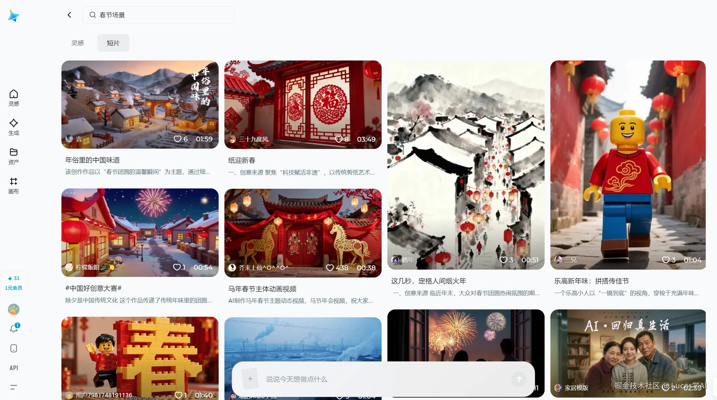 对于活动运营来说,不可能每次从头设计分镜。即梦AI灵感库里预置了大量节日模板、活动场景模板,比如春节、跨年、开业庆典等。你只要选择场景,就可以搜索到大量相关的节日场景视频,还可以参考对应视频的prompt。