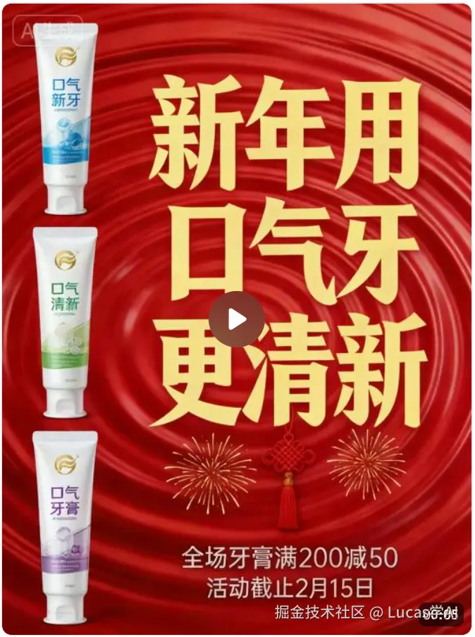- 图像与视频统一输出 在活动准备阶段,我们往往先做海报、邀请函、Banner等视觉图像素材。即梦AI的一大优势是图像和视频创作在同一个生态下,不用来回切换多个工具或平台。你画出的海报配色可以直接延续到视频中。