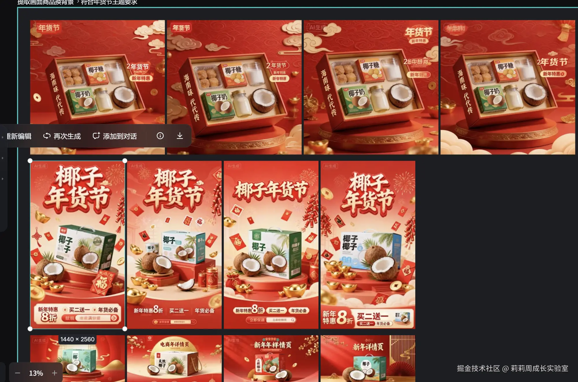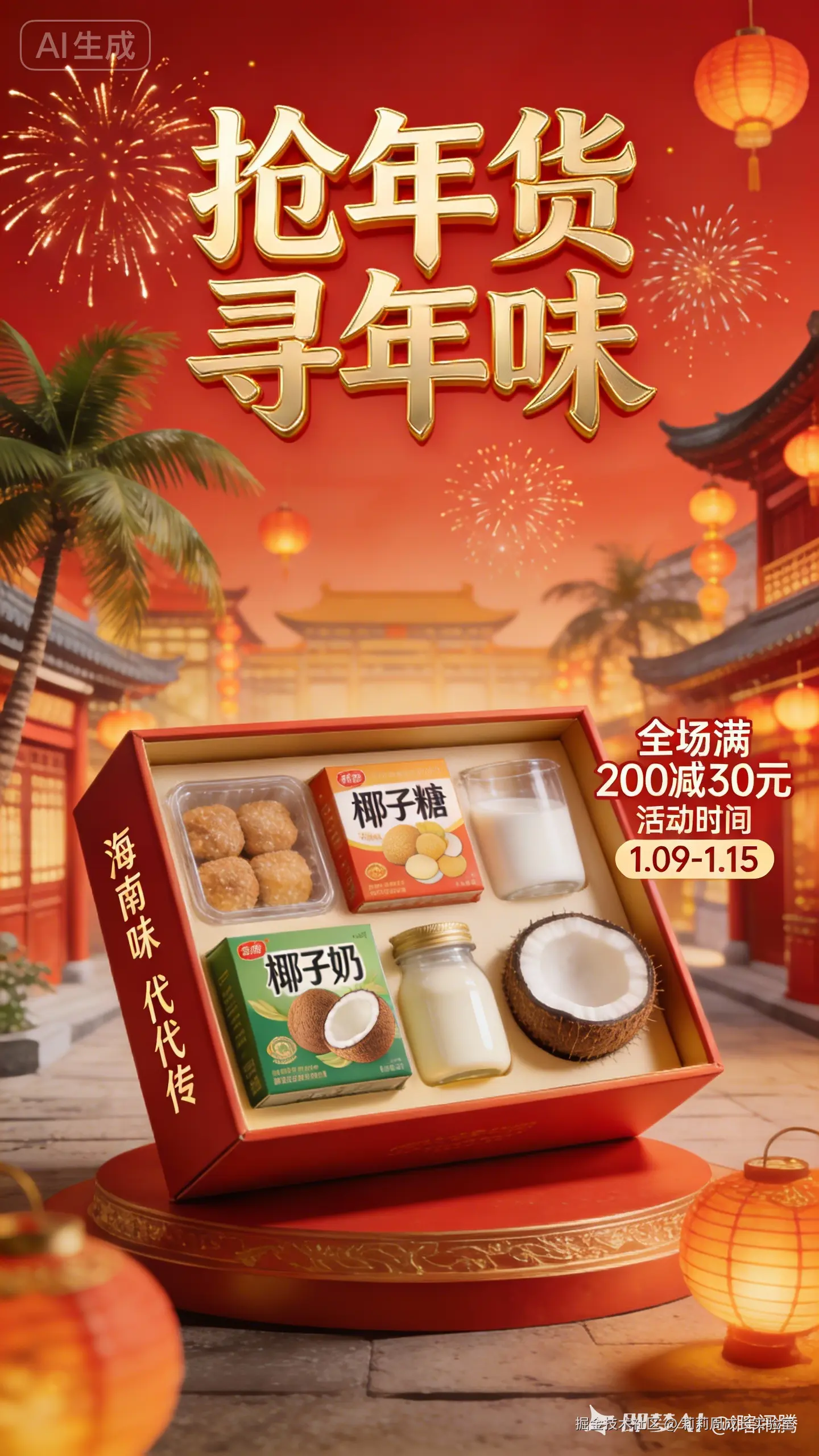 👉 结论: 适合做“灵感图”,不适合追求效率的年货节产品图。
