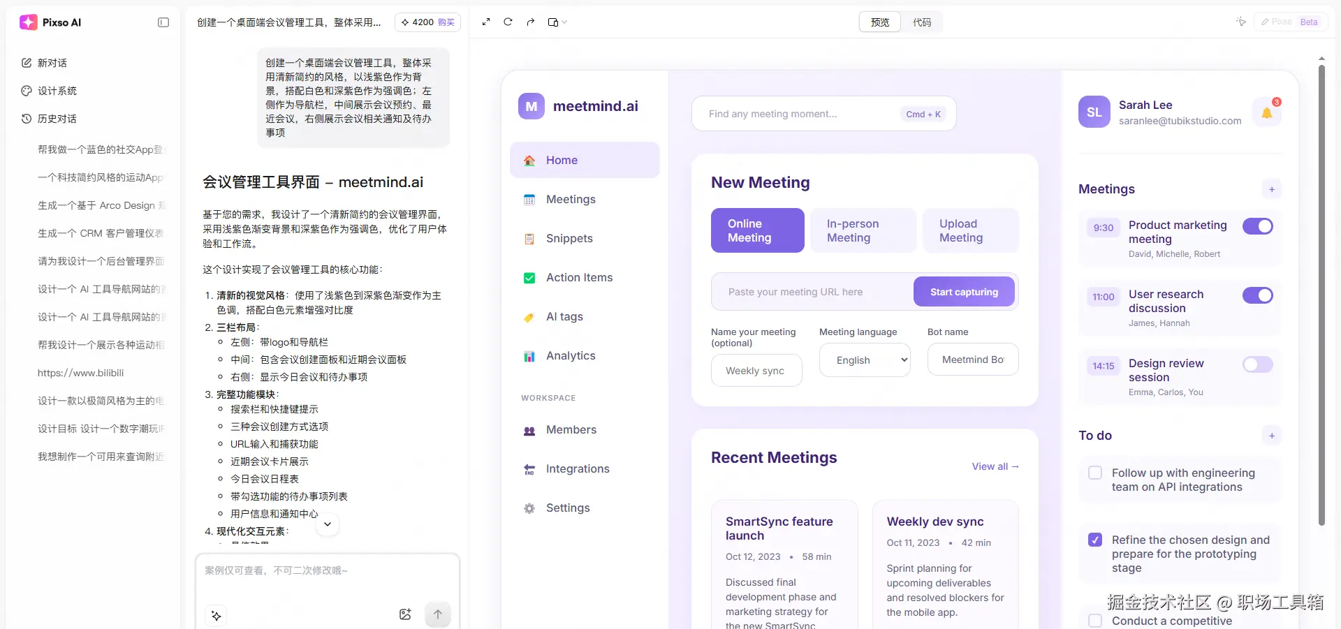 无缝对接国内生态:这应该是 Pixso AI 最硬的底牌了。它跟飞书、钉钉、tx文档这些咱们每天用的办公软件是打通的。AI 生成的稿子,直接就能分享到群里,大家实时评论。对于那些特别在意数据安全、不想把设计稿传到国外服务器的大厂来说,Pixso AI 显然比 Google Stitch 更靠谱。