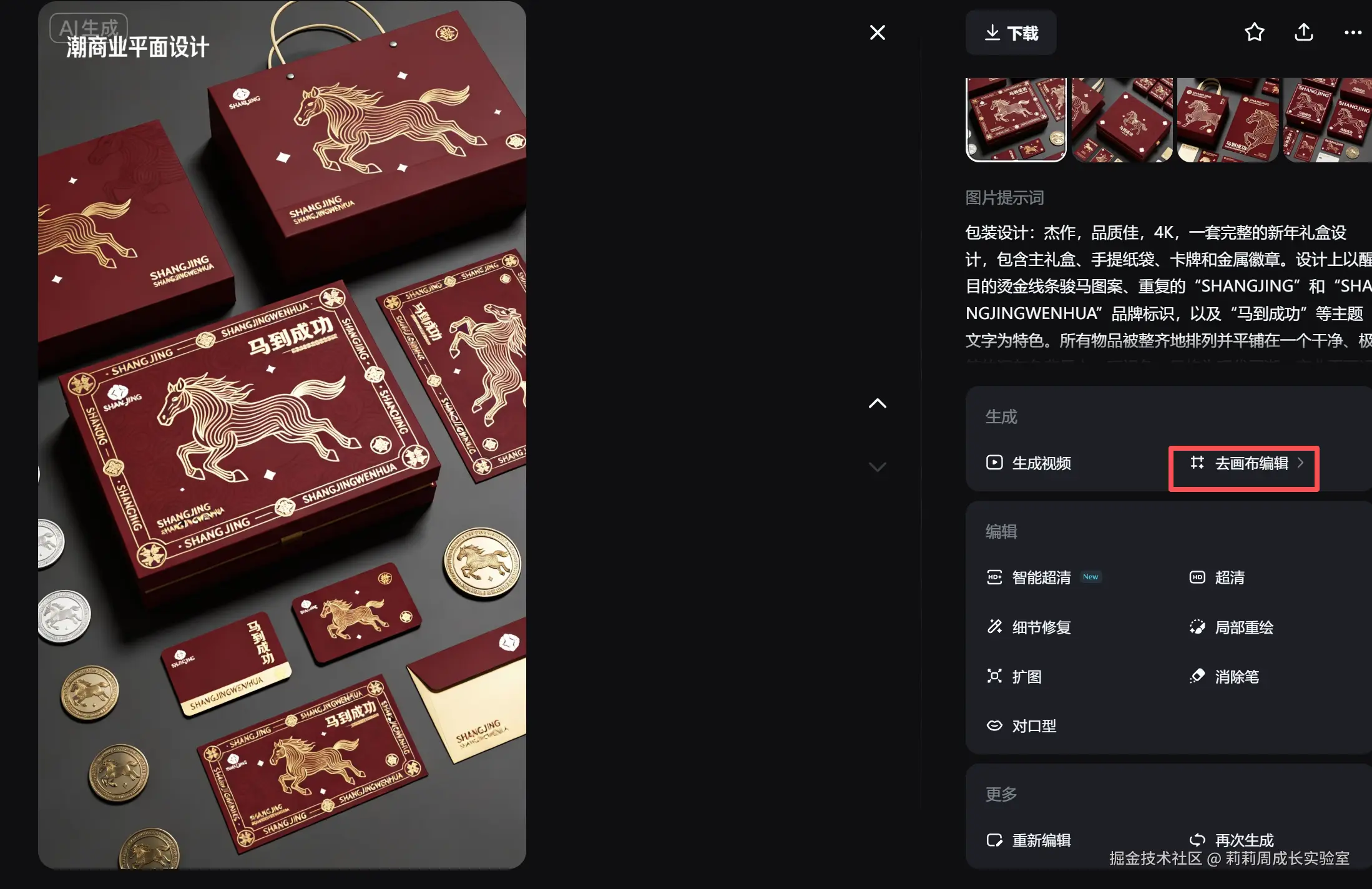 👉 结论: 适合找感觉,不适合作为主力的新年礼盒包装设计 AI 工具。