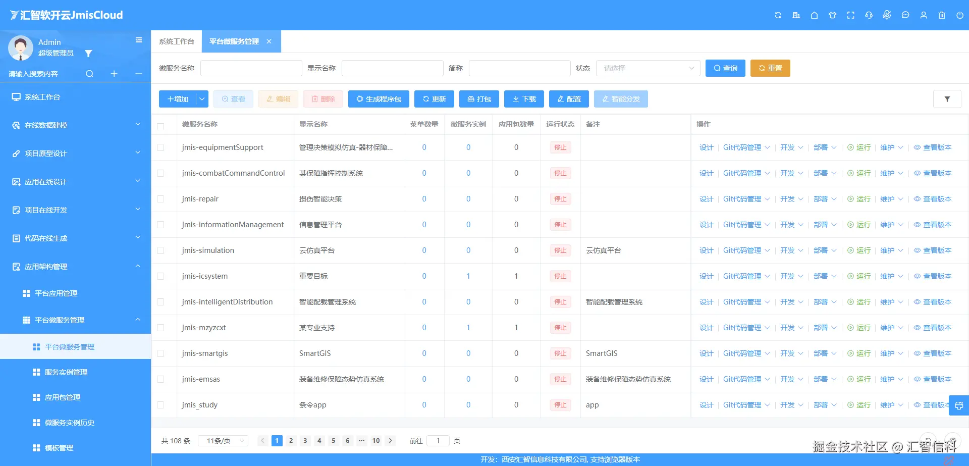在国内率先实现微前端的工程化应用,实现前端的模块分划和安全隔离。具备微服务、微前端的可视化管理。实现微服务、微前端的在线开发、部署、运行、维护功能,实现一键部署与发布功能,支持合并多个微服务、微前端。支持发布Web应用为基于JmisAgent的可执行文件,实现一键安装并启动运行。