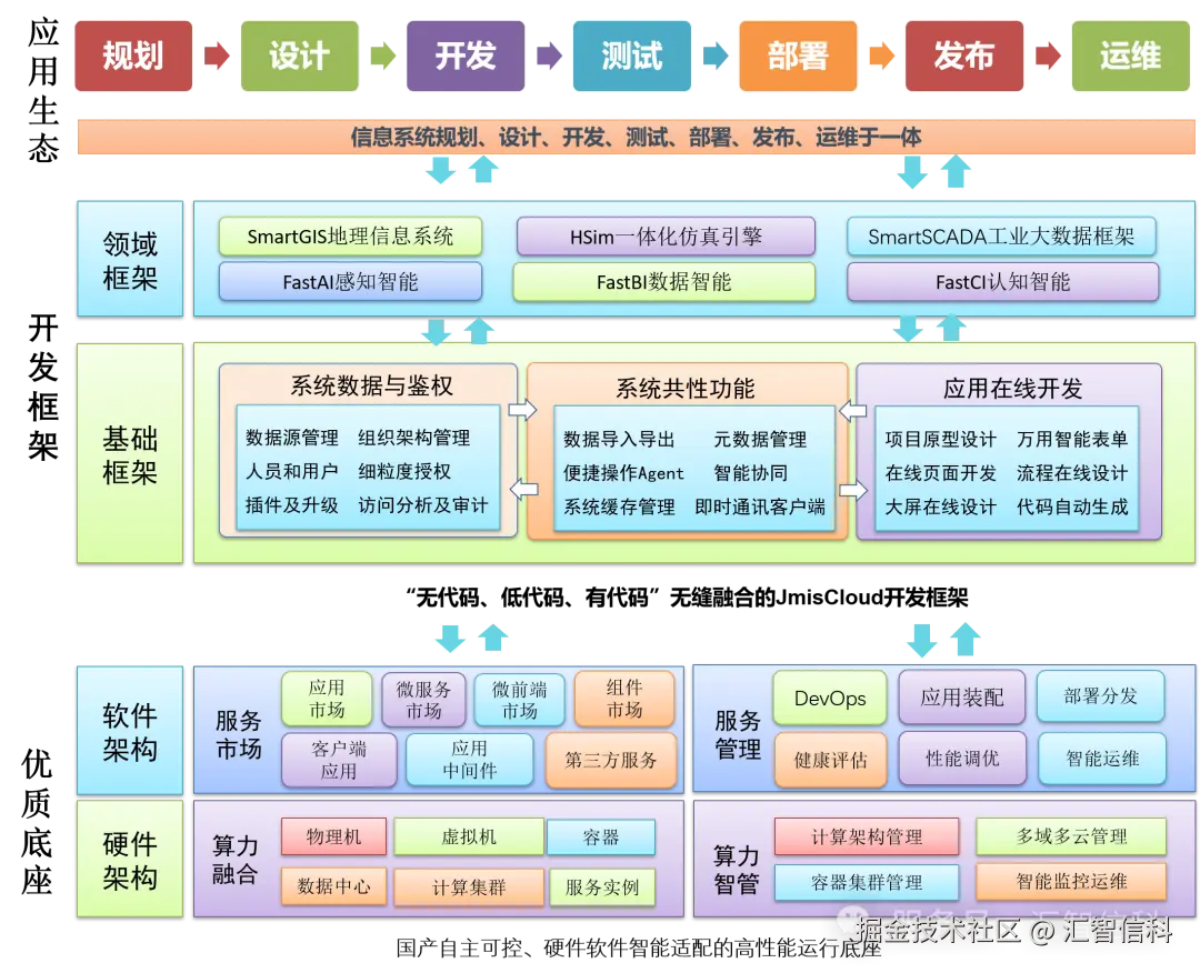 JmisCloud软开云作为“开发框架、生态平台、优质底座”三位一体的战略性产品,坚持持续迭代、演化式发展的复杂系统推进思路,致力于打造永不宕机的智能应用。