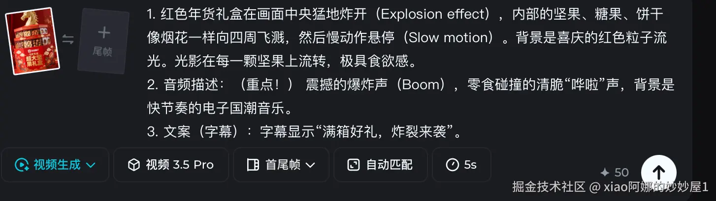 在用它帮一个零食品牌做了一条“礼盒爆炸”的特效分镜后,我可以负责任地告诉大家:它的生视频能力不仅跻身国内第一梯队,音频能力更是国内top。