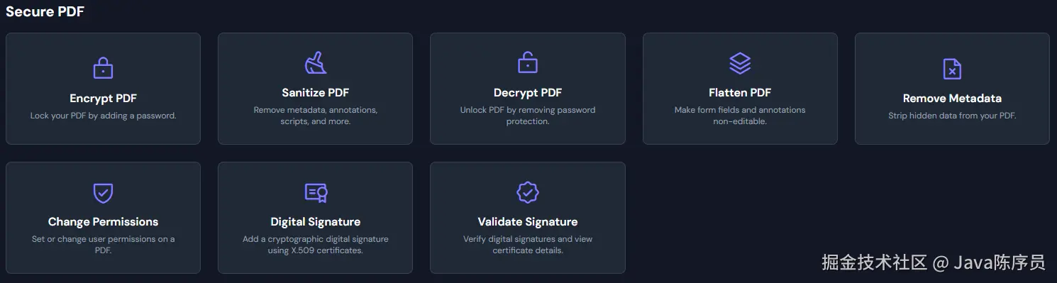 提供 PDF 加解密、签名等工具。