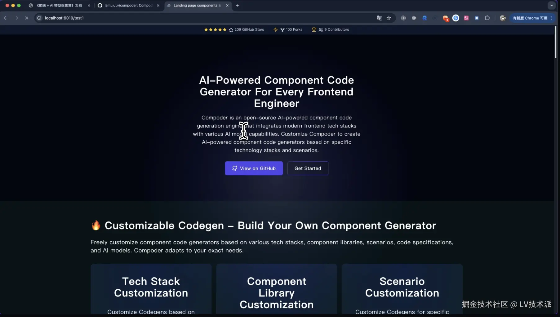 compoder landing page codegen 生成 https://github.com/IamLiuLv/compoder/ 的 landing page