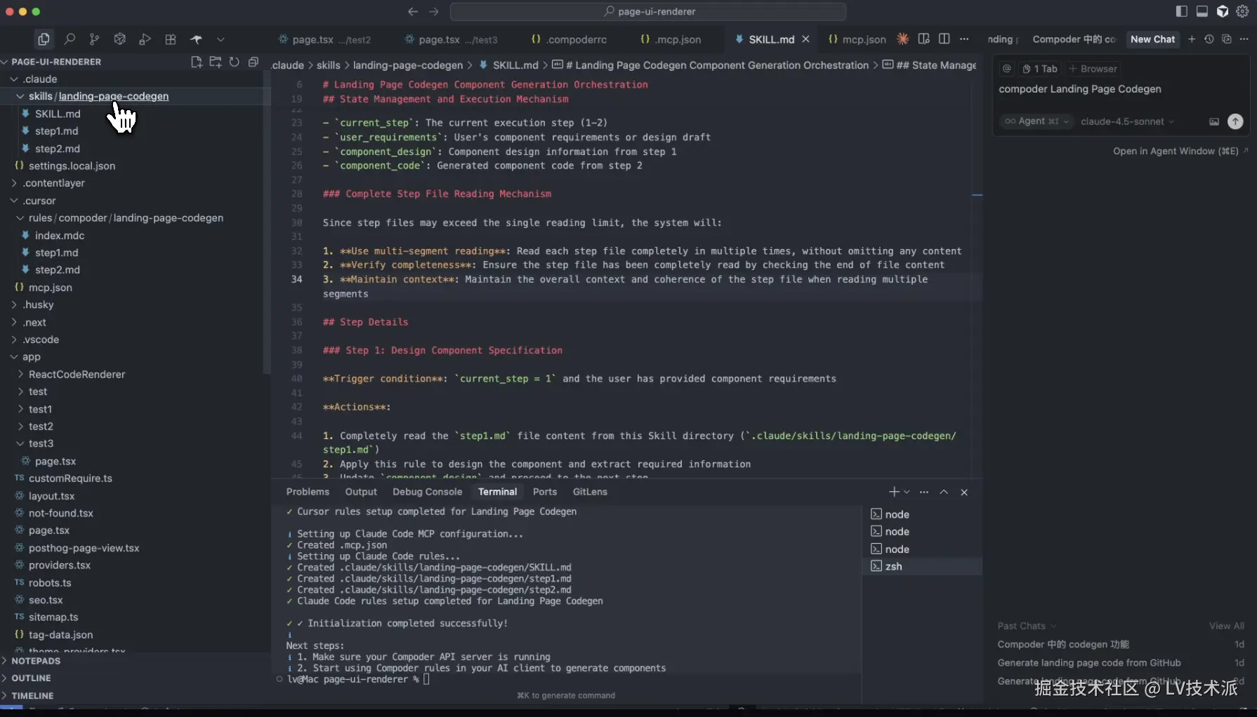在执行 compoder init 的时候,我们选择 Claude Code 作为 AI Coding 基建,则会在项目中生成一个 .claude/skills/landing-page-codegen 文件夹,内容如下: