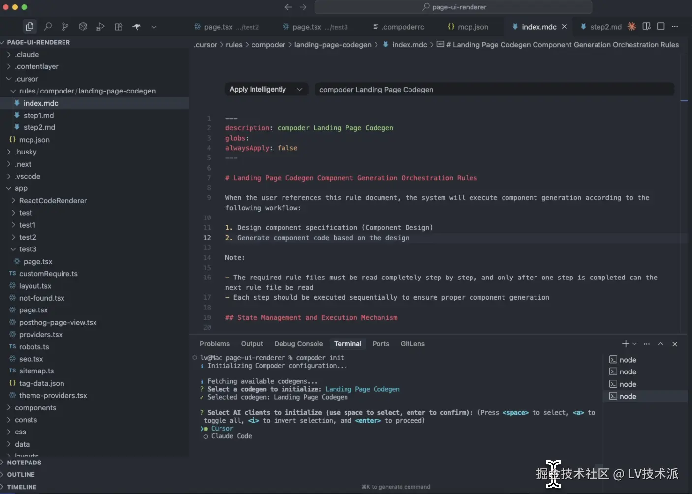 compoder init,根据 cli 提供的交互,选择 Landing Page Codegen,然后选择 Cursor 作为 AI Coding 基建