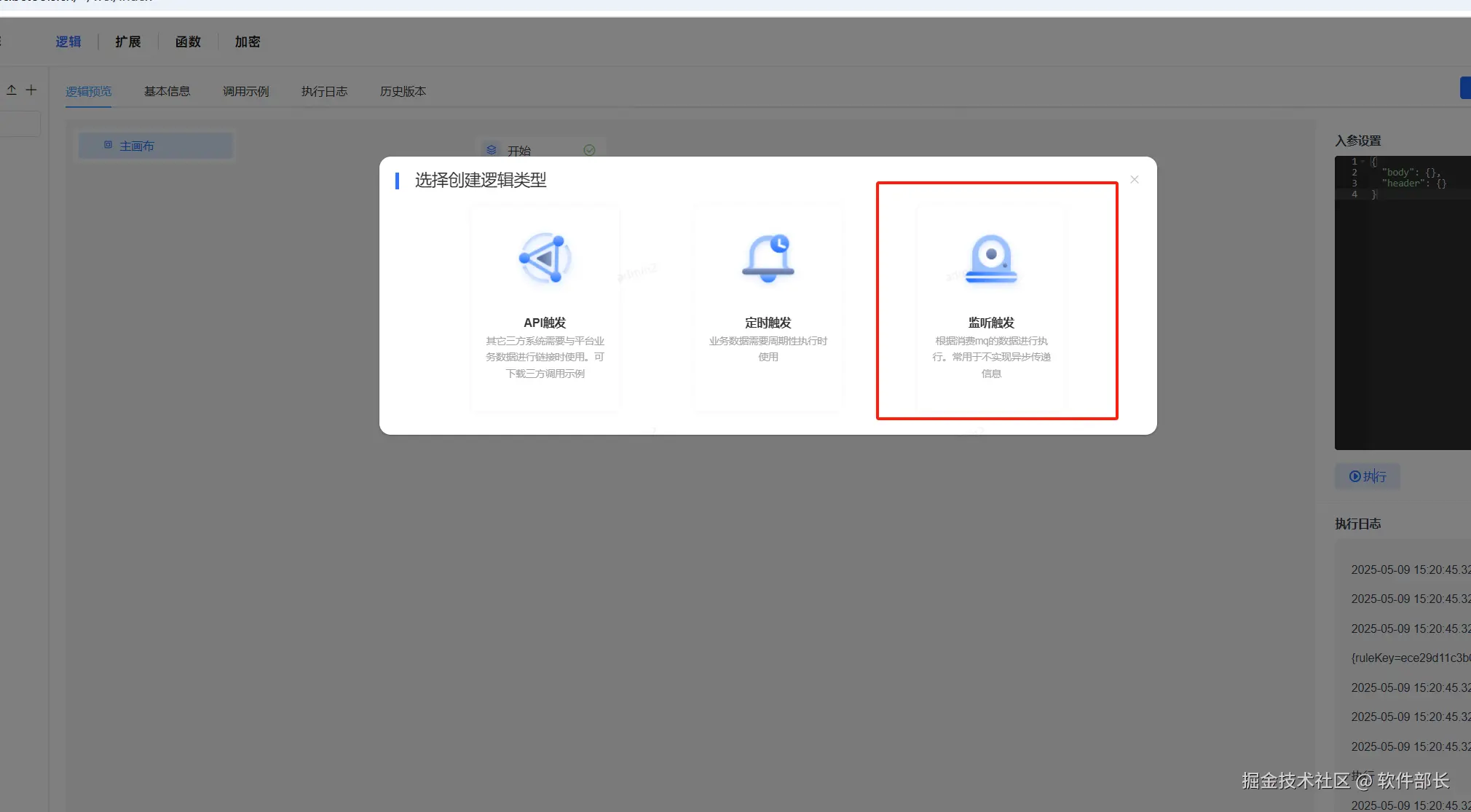 在JVS的逻辑引擎中,提供了一个“RabbitMQ 监听触发”的能力,可以轻松实现实时监听 RabbitMQ 指定队列的消息。一旦有消息到达指定队列,相关逻辑便会自动触发执行。这不仅实现了真正的业务解耦,还大大提升了系统的响应速度与可扩展性。