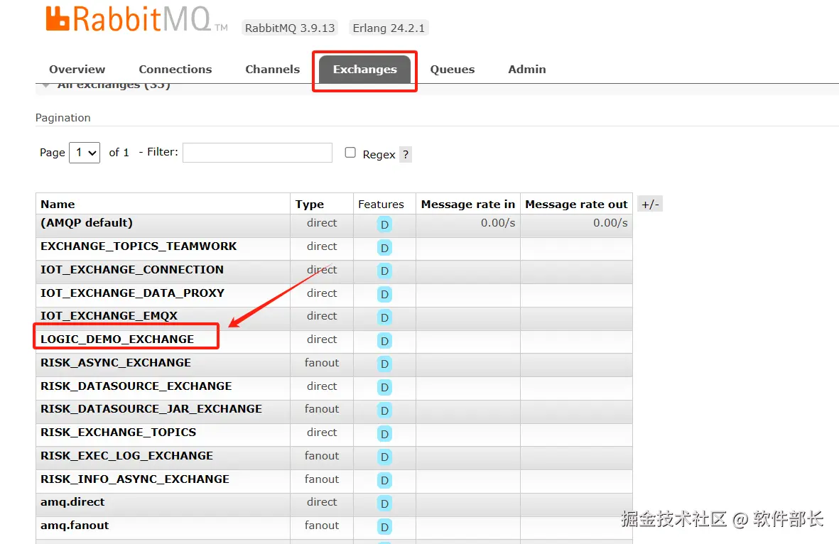 4、回到Exchanges,找到前面新增的LOGIC_DEMO_EXCHANGE,并点击。