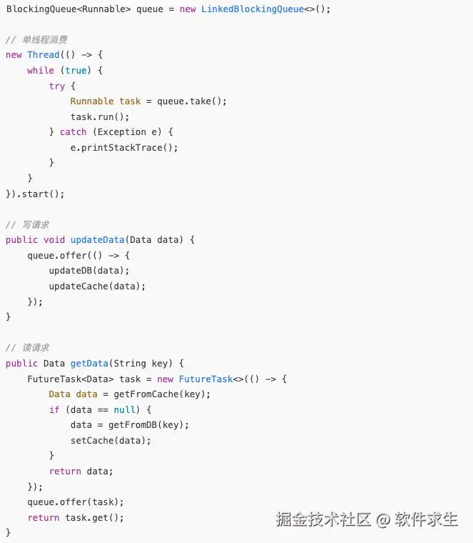 如果业务要求强一致性,可以通过读写请求串行化的方式,把所有请求串到内存队列中,但代价是吞吐量大幅下降,通常不推荐。