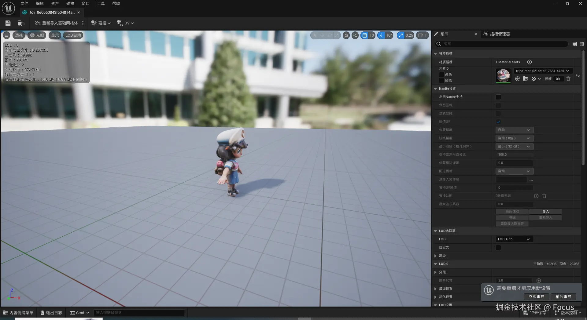 到这里,整个流程都已跑通,对于使用 UE 的用户来说,只需要在当前编辑的工具栏操作一下选择图片即可,然后就干自己的事就行了,当模型生成完会自动导入到当前编辑器中,完美实现了无跳出的批量生成模型。