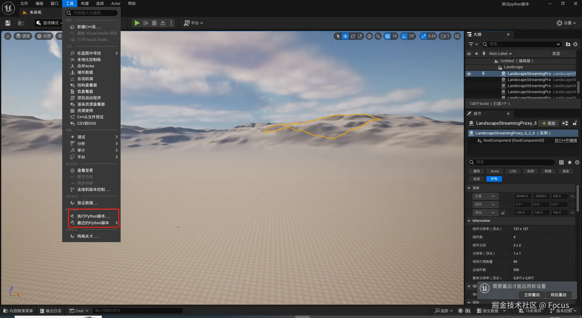 当我陷入绝望的时候突然发现了 UE 中有一个执行脚本的功能,于是我萌生了一个邪修的想法,利用 python 实现核心流程然后在 UE 里触发执行脚本不就行了,不得不说 python 真香,2天就搞定了最头疼的部分,至于这个脚本怎么写怎么用下面会详细讲👇