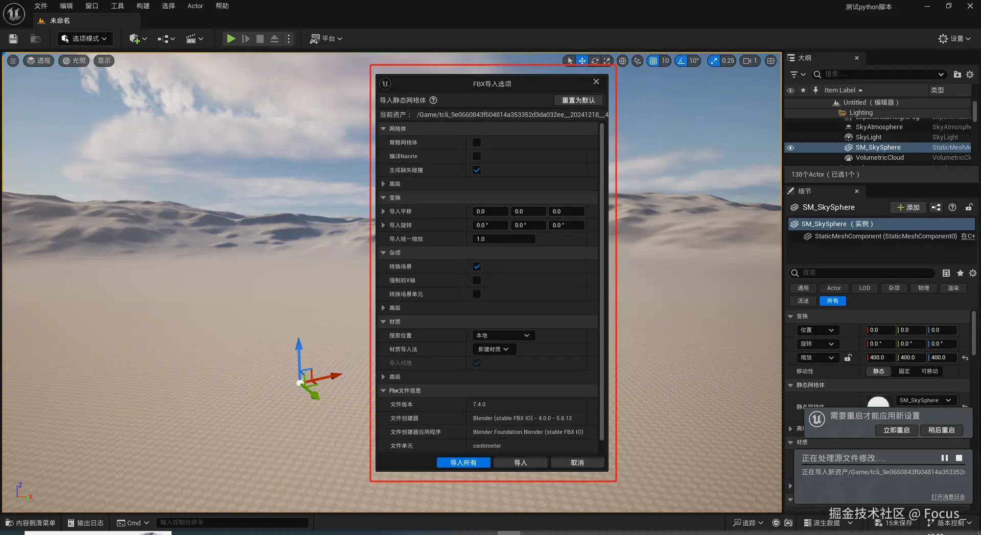 上述 1-3 流程只需要配置一次,下次打开 UE 编辑器会自动执行启动脚本实时监听已生成的模型并下载导入至编辑器内;4 为图片生成新3D模型的时候执行