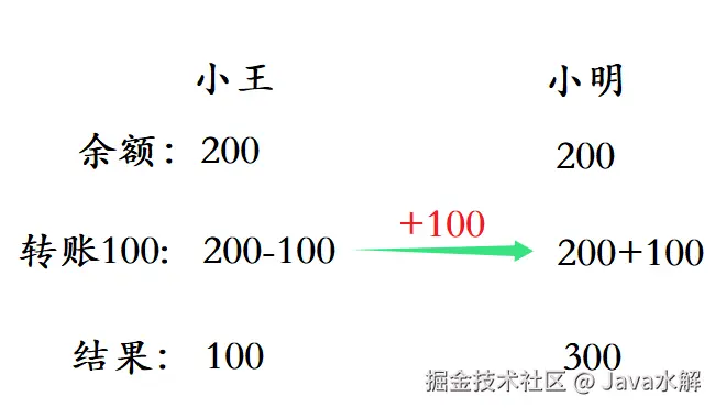 -- 转账:小王转账100给小明