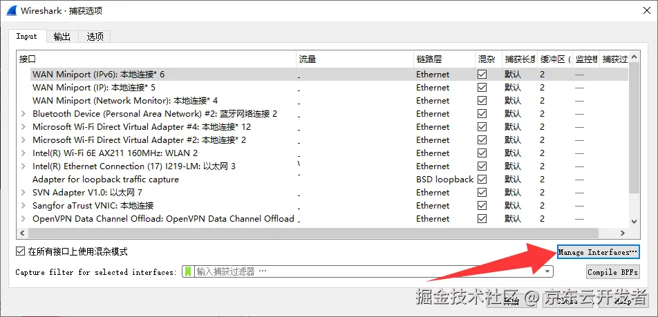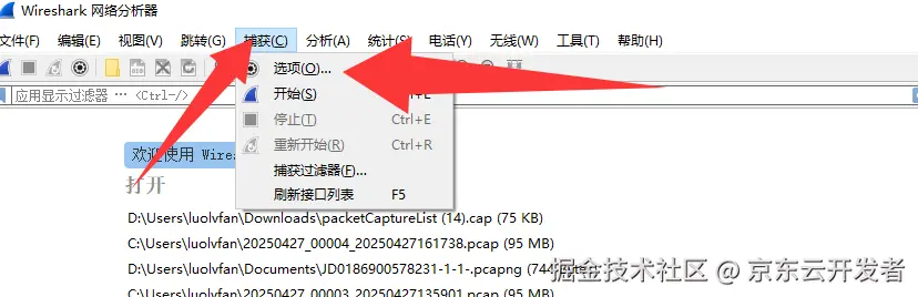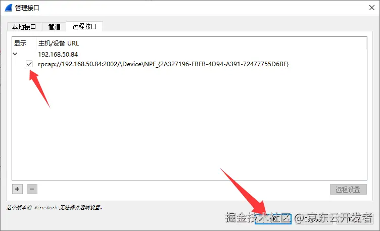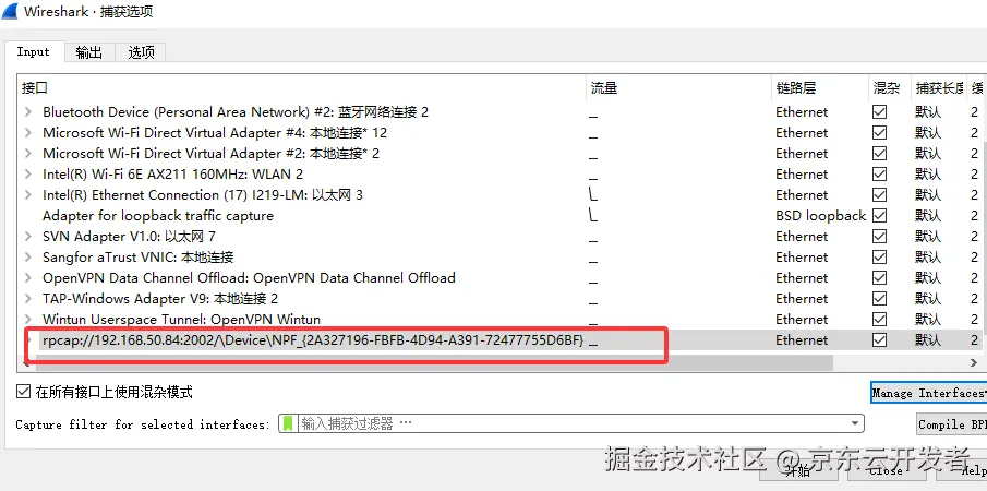 接下来调用这个远程端口就可以直接对目标机器的网卡进行在线抓包分析