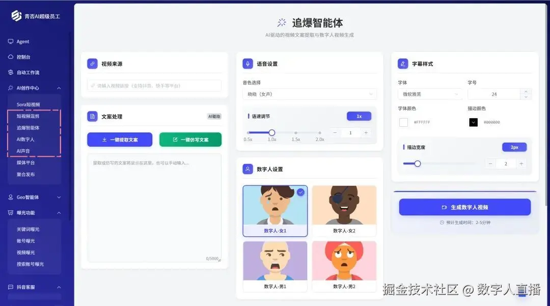 只需输入抖音短视频链接,追爆智能体会自动复刻专属文案并仿写,同步匹配你的AI 数字人形象与克隆声音,合成全新短视频。1:1还原爆款质感的同时保持原创属性。