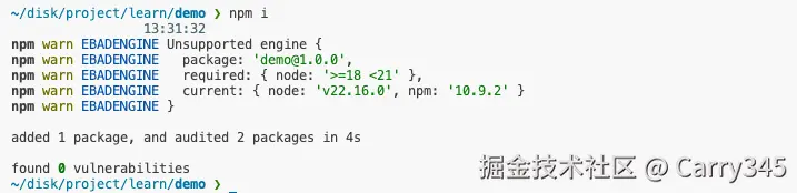 问题:如果开发者任意使用了某个版本的 node,显然是不符合预期的,所以我们需要添加约束,来尽可能早的暴露错误