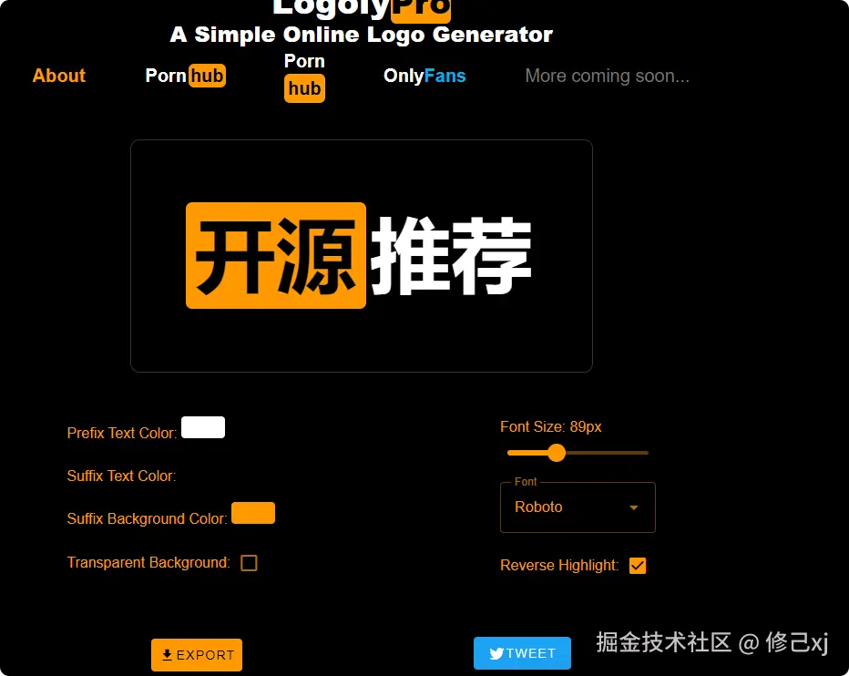 一个可以在线生成 Pornhub / OnlyFans 风格 Logo 的小工具,只需要改几个字、调调颜色,几秒钟就能导出一张“似曾相识”的趣味 Logo。