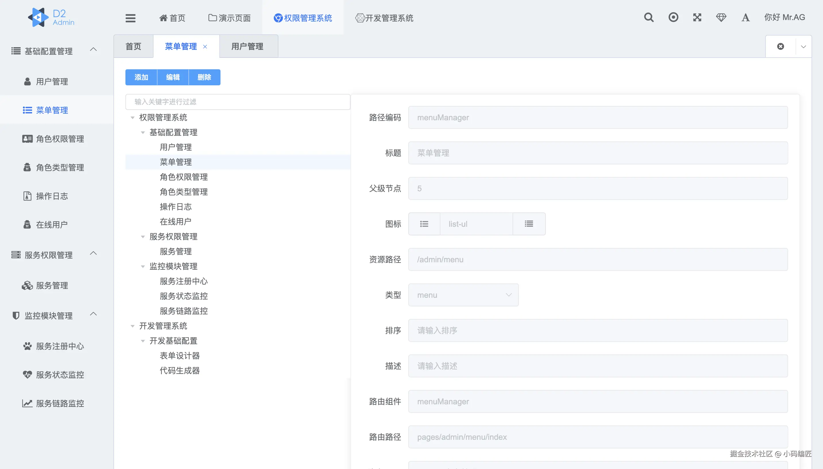 基于d2admin框架,优化前端架构,支持模块化开发,适配中台化服务架构。