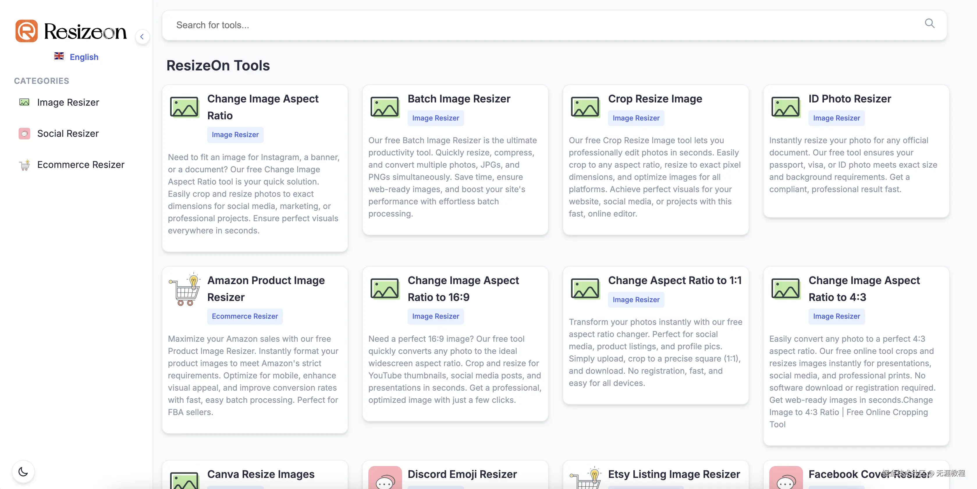 极简好用的图片调整工具。它支持在线修改图片宽度、高度,进行精确裁剪或格式转换。无论是为了社交媒体上传还是网页设计需求,ResizeOn 都能帮您快速调整出最完美的图像规格。