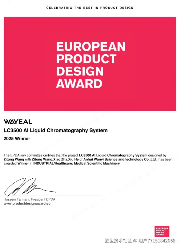 2025年12月22日,安徽皖仪科技股份有限公司(以下简称“皖仪科技”)宣布,其LC3500液相色谱系统凭借卓越的综合实力,成功摘得2025年欧洲产品设计奖(European Product Design Award)。这一成就成为中国高端分析仪器在本年度国际奖项评选中的重要里程碑,不仅体现了产品在性能与设计方面的突出表现,也标志着欧洲市场对皖仪科技品牌的高度认可,为中国分析仪器拓展全球高端市场注入新动力。